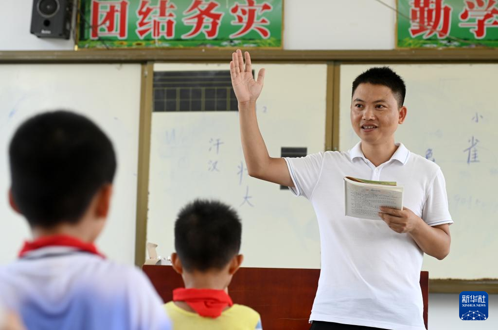 在廣西南寧市邕寧區中和鎮中心學校那才教學點,“85后”老師滕永社在給學生上課(9月5日攝)。