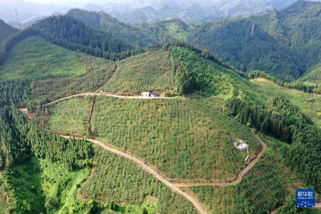 這是9月11日在廣西南丹縣城關鎮關上村拍攝的獼猴桃種植基地(無人機照片)。