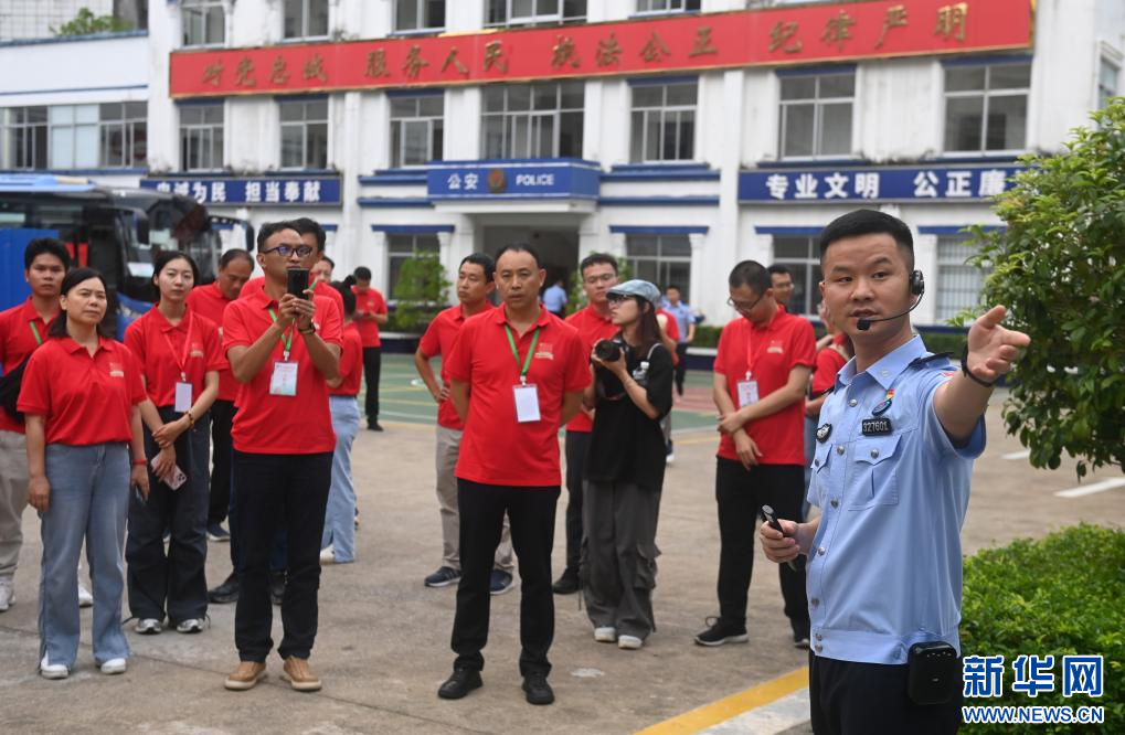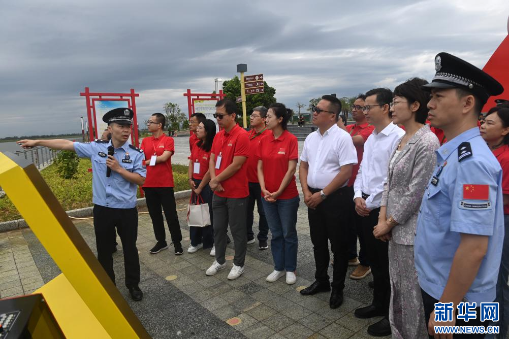 9月23日,巡訪活動參加人員在廣西東興邊境派出所聽取有關情況介紹。新華社記者 陸波岸 攝
