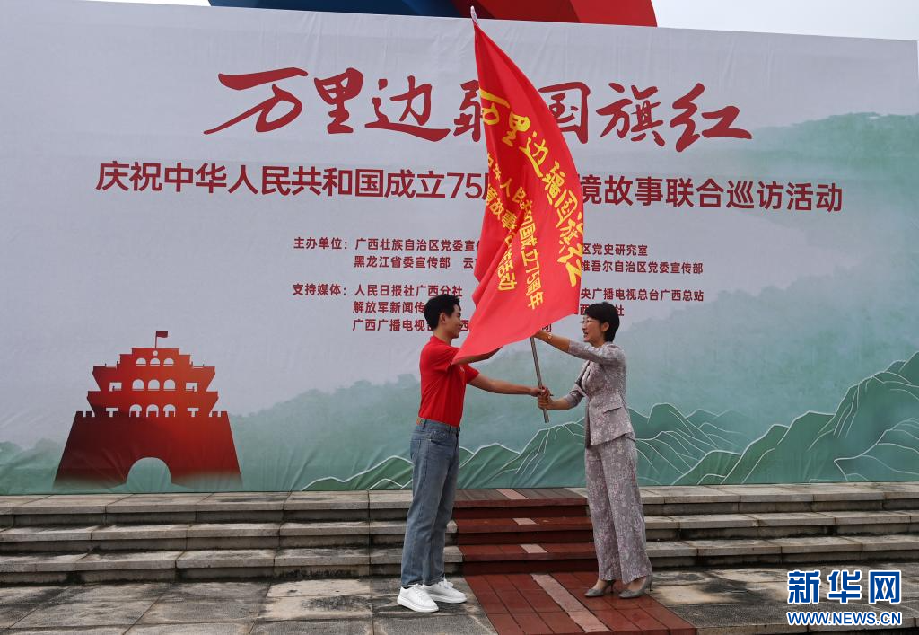 新華網南寧9月25日電(記者 陸波岸) 萬里邊疆,因國旗輝映更顯巍峨壯麗;邊境故事,隨祖國發展更加精彩紛呈。9月23日至25日,由廣西、黑龍江、云南、新疆4?。▍^)黨委宣傳部共同舉辦的“萬里邊疆國旗紅——慶祝中華人民共和國成立75周年邊境故事聯合巡訪”活動,第一站聯合巡訪活動在廣西開展。