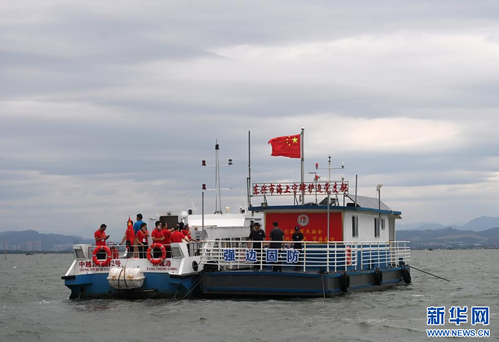 9月23日,巡訪活動參加人員到廣西東興市海上守碑護邊黨支部了解情況。新華社記者 陸波岸 攝