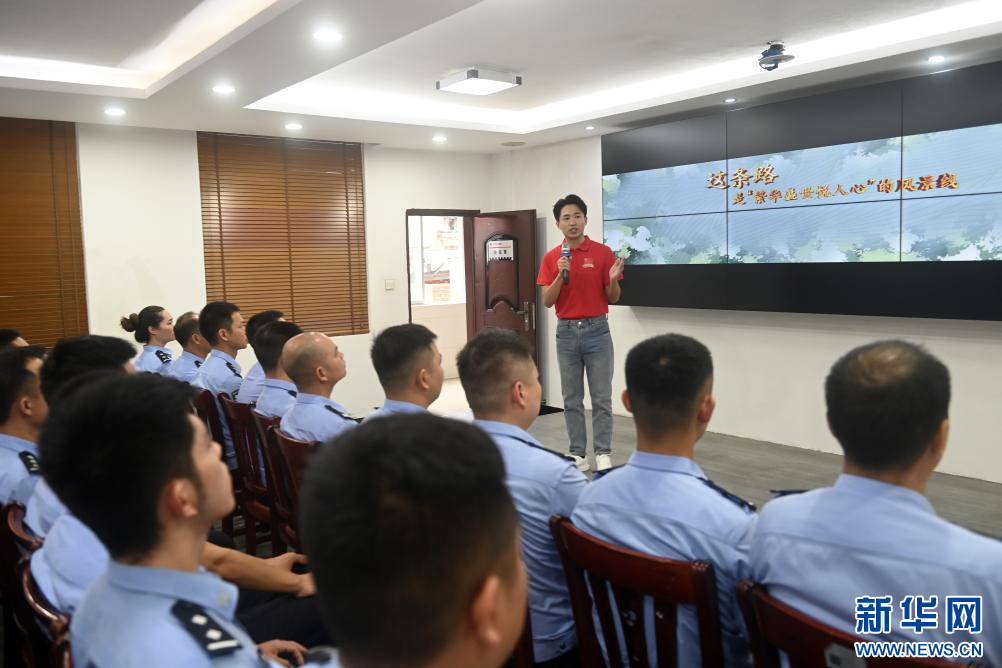 9月23日,在廣西東興邊境派出所,來自廣西交通投資集團南寧高速公路運營有限公司的黃龍游在進行巡講。新華社記者 陸波岸 攝