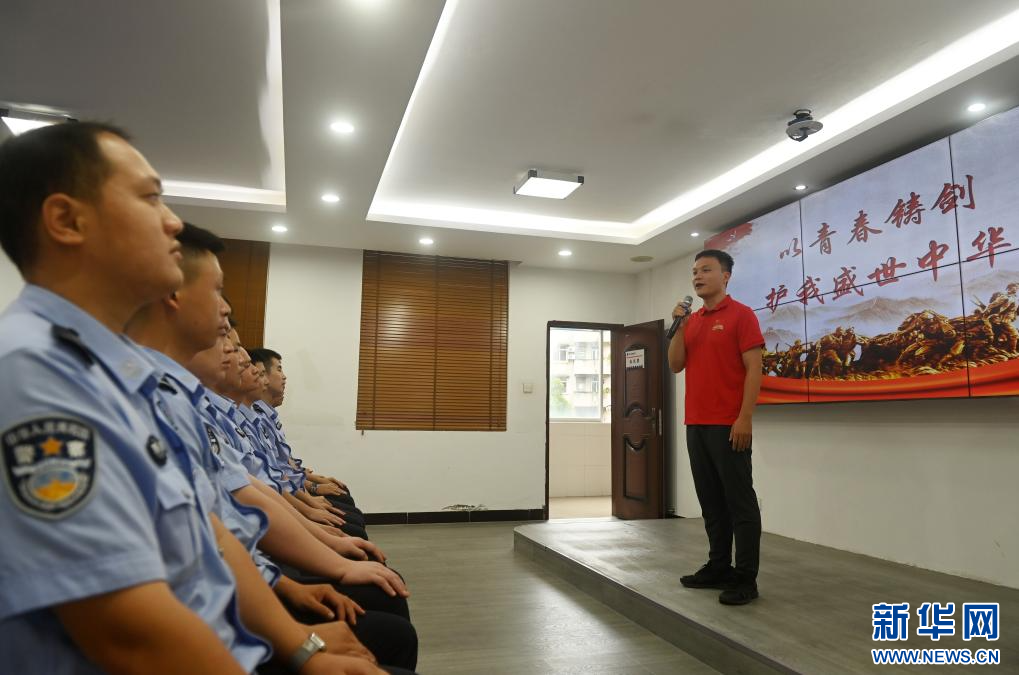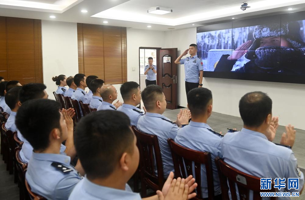 9月23日,在廣西東興邊境派出所,黑龍江省大興安嶺地區漠河市北極邊境派出所民警史先強在進行巡講。新華社記者 陸波岸 攝