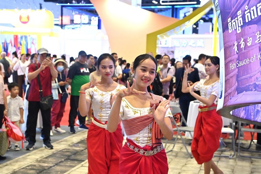 9月28日,柬埔寨演員在第21屆中國-東盟博覽會上表演舞蹈。(周華 攝)