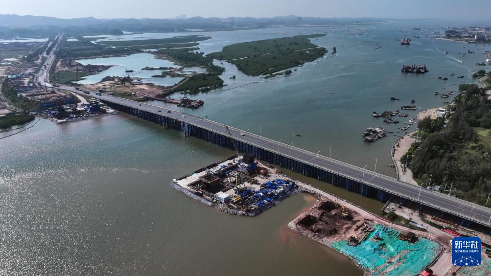 這是正在拆建中的欽州一橋(10月11日攝,無人機照片)。