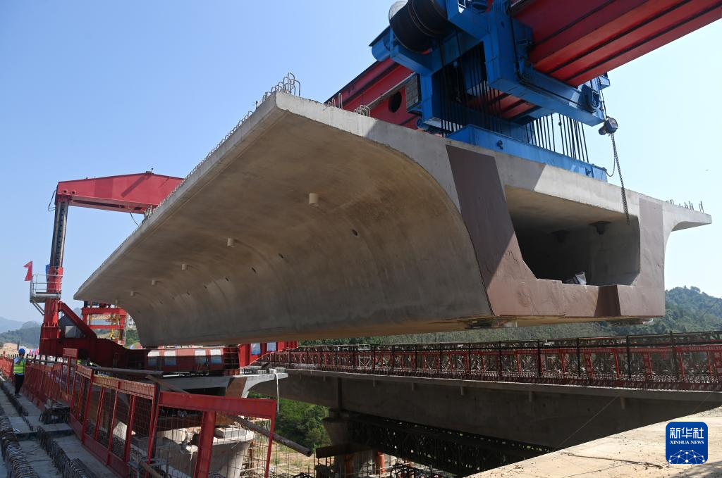 10月11日,一榀長24米重570噸的箱梁沉穩落在南憑高鐵憑祥東站出站五線大橋上,標志著南憑高鐵崇憑段(廣西崇左市至憑祥市)項目全線路基、隧道、橋梁鋪架完成,為即將開始的鋪軌施工奠定基礎。