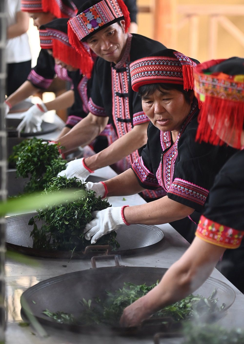 3月25日,在梧州市蒼梧縣六堡鎮山坪村,村民們在制茶。(黃孝邦 攝)