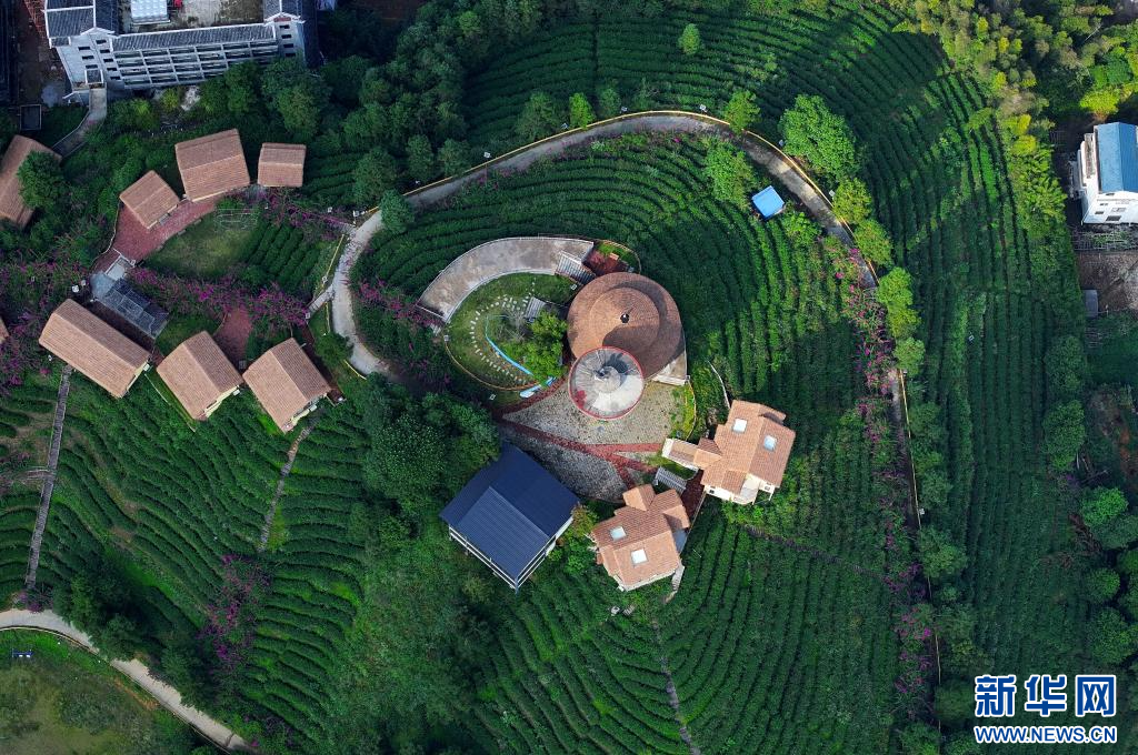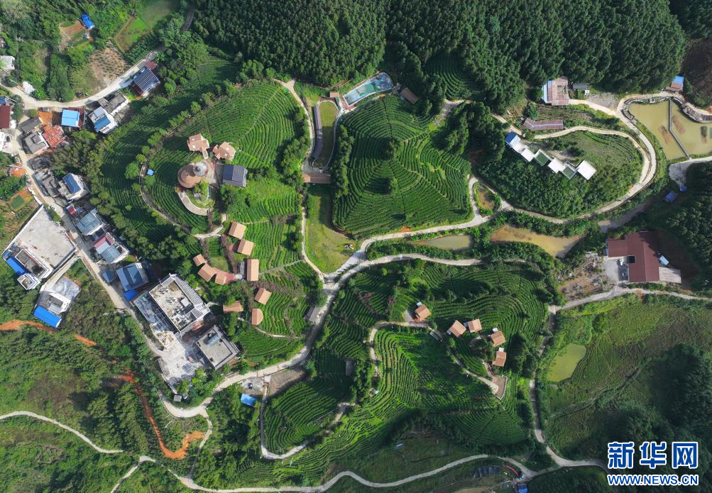 這是廣西融水苗族自治縣融水鎮新安村水融香茶園茶葉種植基地,這里是融合民宿、觀光旅游、茶葉種植等業態為一體的粵桂協作現代農業產業園(無人機照片,10月19日攝)。
