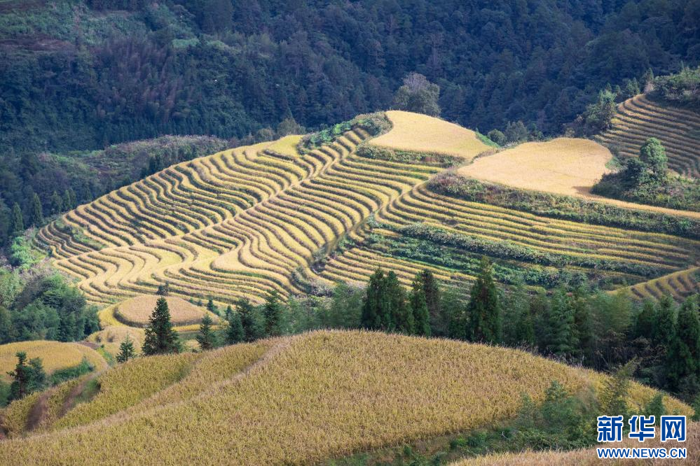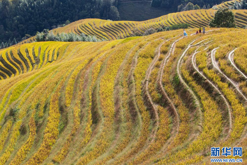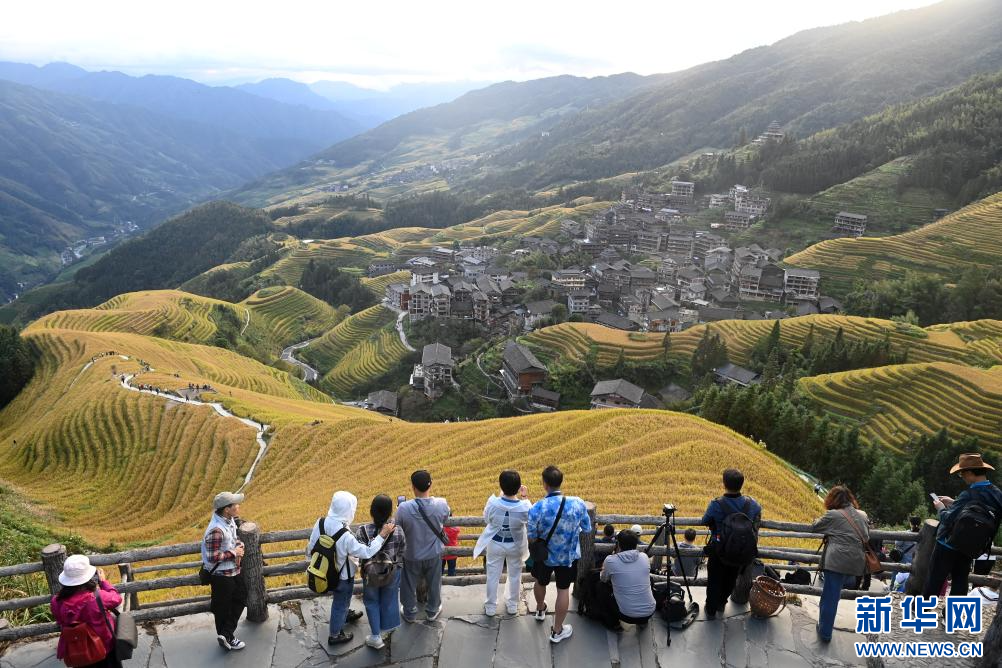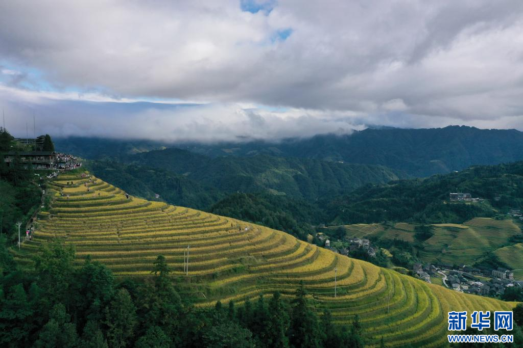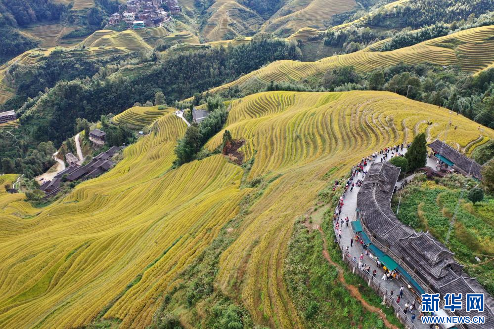 眼下,廣西龍勝各族自治縣龍脊梯田一片金黃,吸引大批游客前來游覽觀光。龍脊梯田已有2300多年歷史,是聯合國糧農組織認證的全球重要農業文化遺產。