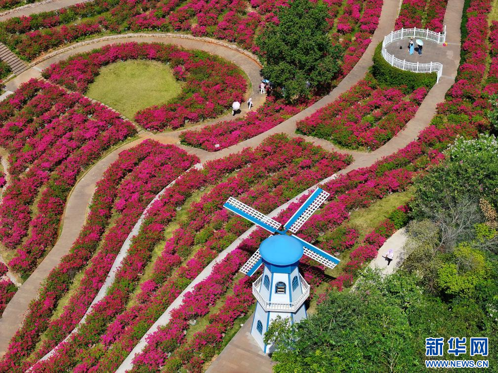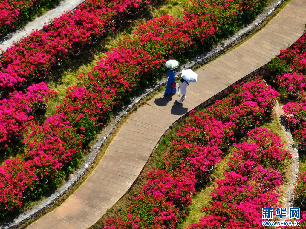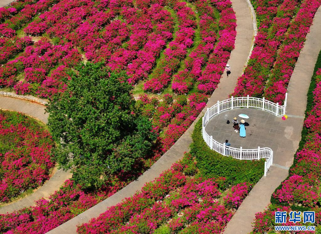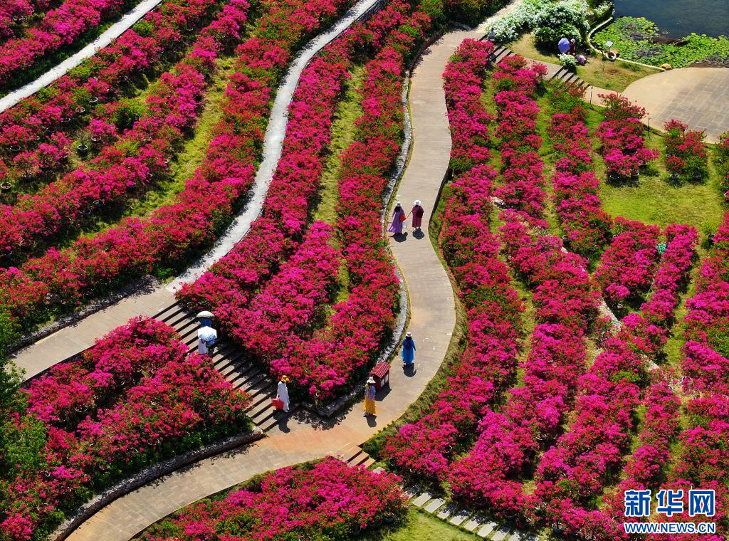 游人在南寧青秀山風景區葉子花園觀賞三角梅(10月25日攝,無人機照片)。