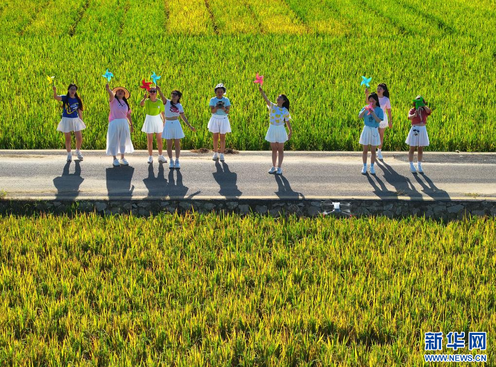 游人在南寧頂螄山田園風光區游玩(10月25日攝,無人機照片)。