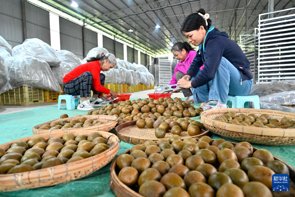 10月29日,在廣西柳州市鹿寨縣拉溝鄉,工人在收購點里分揀羅漢果。