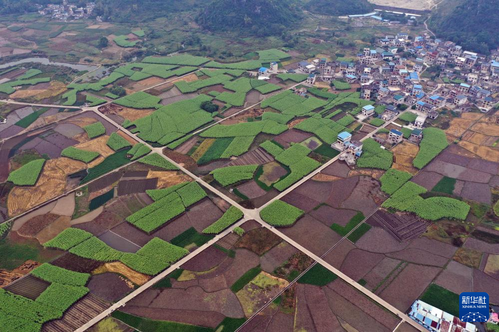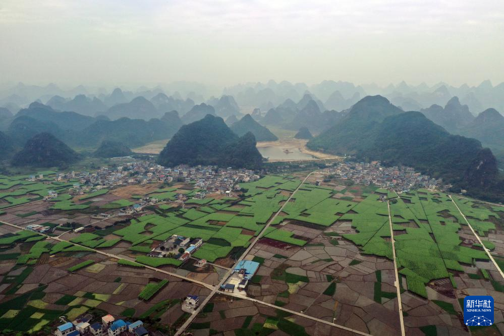 11月3日,在廣西柳州市柳江區百朋鎮里團村,村民在收果蔗(無人機照片)。