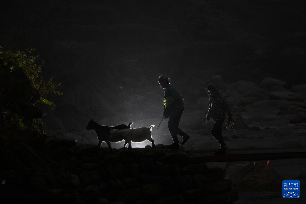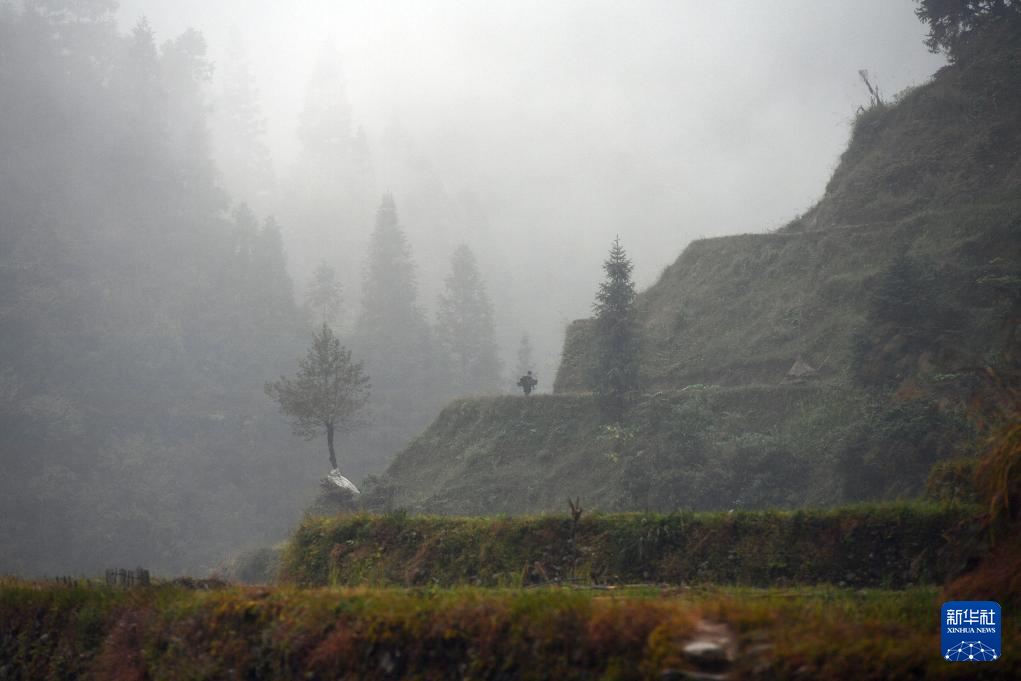 烏英苗寨村民在細雨中勞作歸來(2017年11月11日攝)。