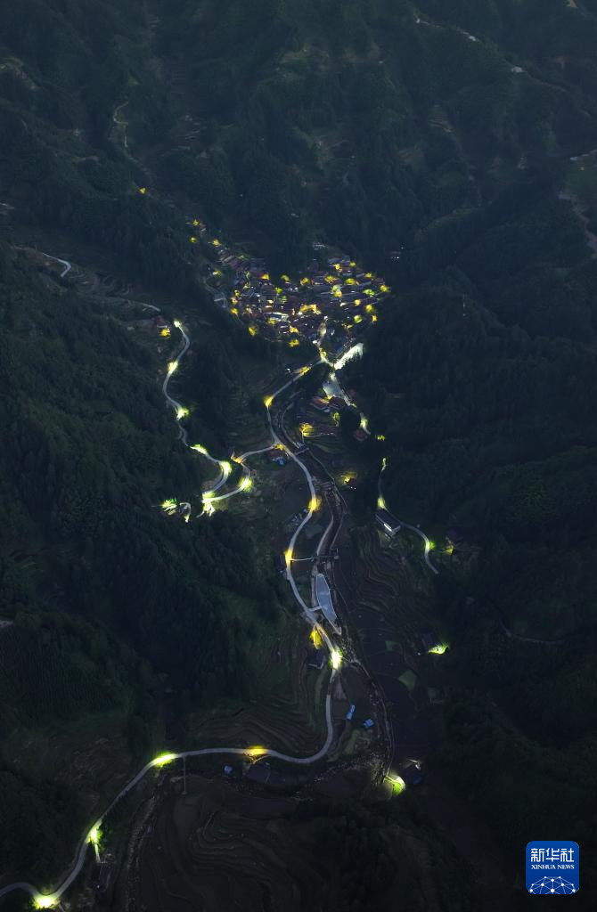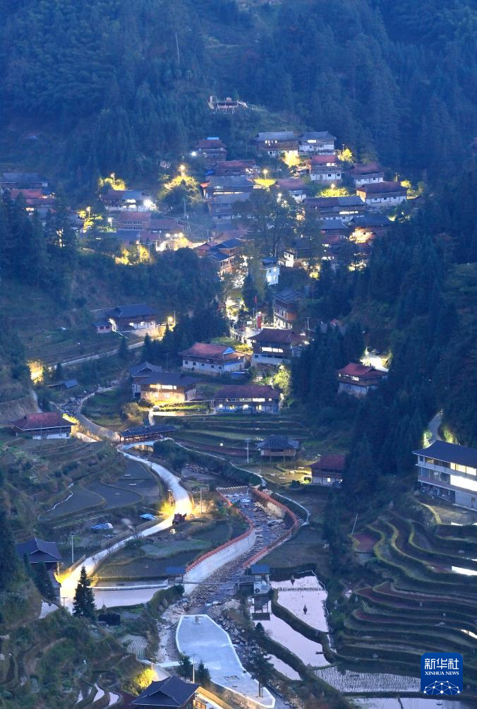 夜色中的烏英苗寨(無人機照片,2024年11月9日攝)。