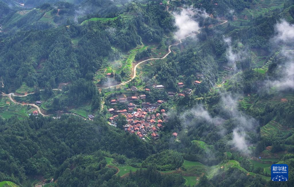 雨后的烏英苗寨(無人機照片,2024年7月18日攝)。