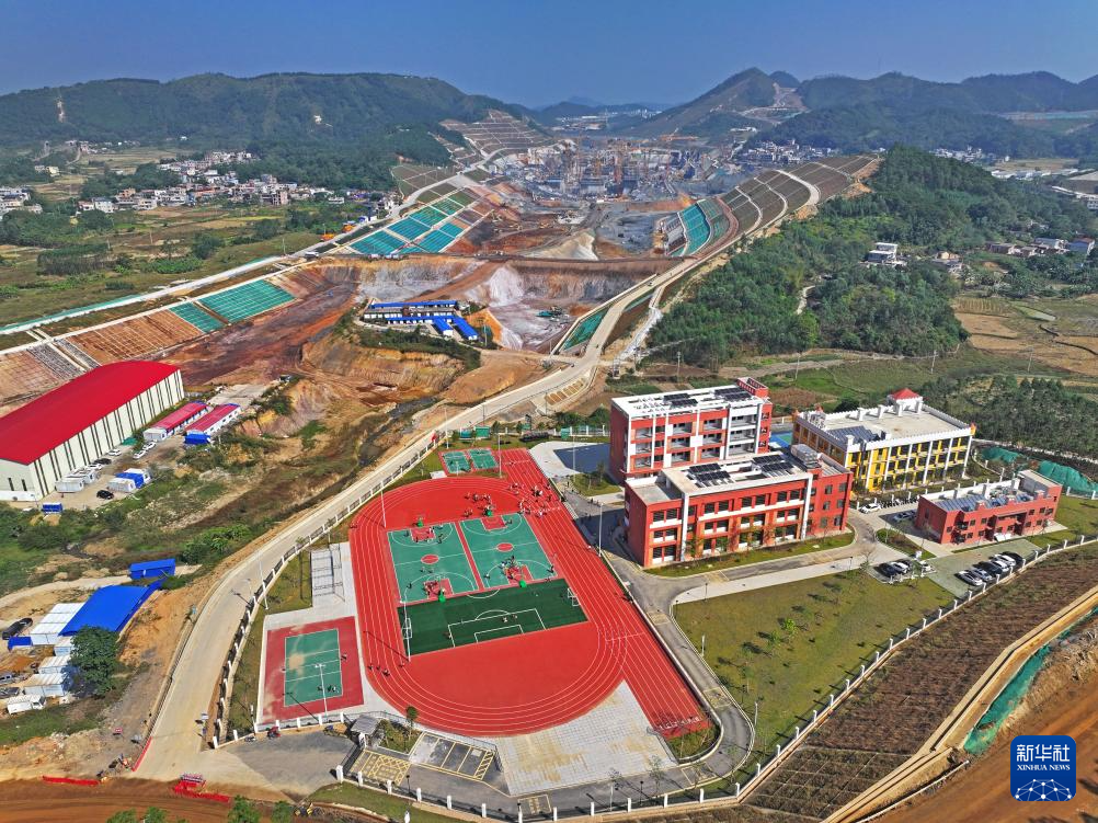 這是廣西欽州市靈山縣舊州鎮石橋小學新校區,與平陸運河僅一路之隔(11月7日攝,無人機照片)。
