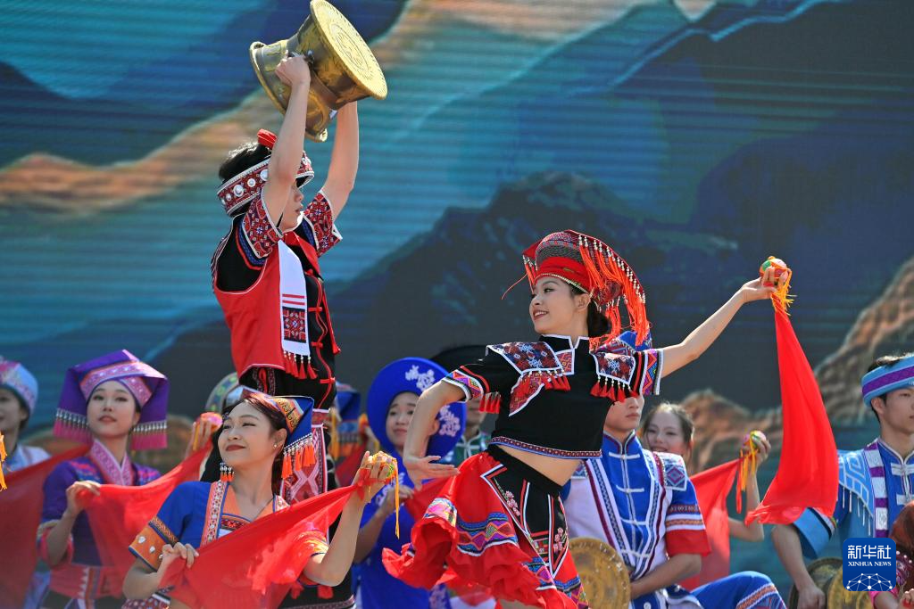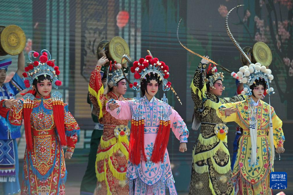 11月12日,在梧州市政廣場,演員在表演民族歌舞。