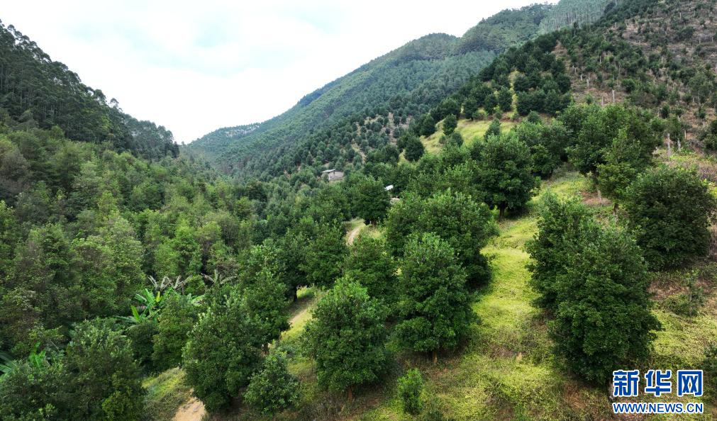 六萬林場的八角樹上,八角果實掛滿枝頭。新華社記者 王楚然 攝