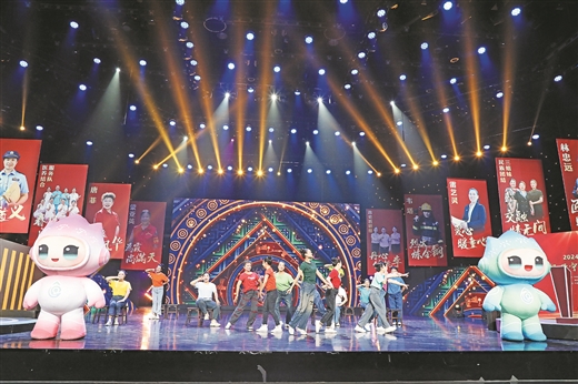 興寧區城市IP形象“南小興”和“友小寧”與舞蹈演員現場演繹南寧美食的故事。 侯呈志/攝