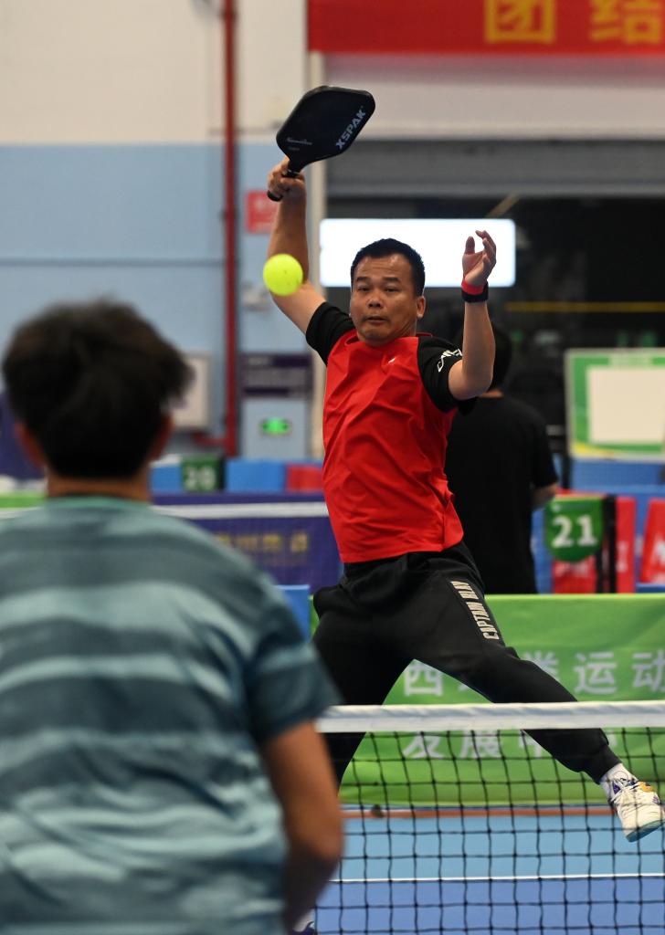 12月20日,在廣西桂林電子科技大學球類館,匹克球賽選手在比賽中。