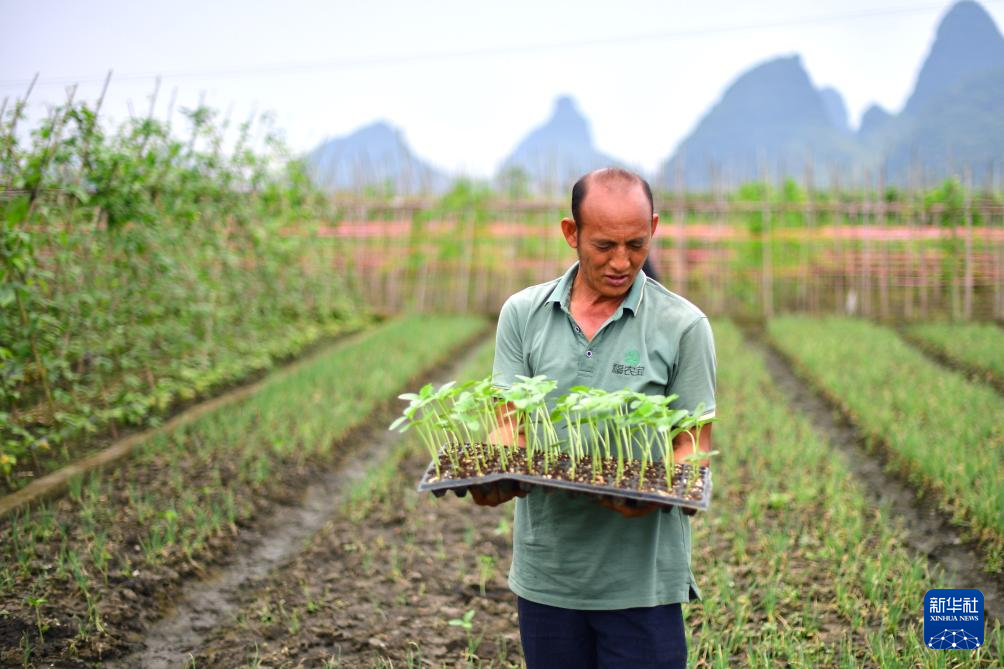 2024年5月15日,覺山村村民韋初滿準備種植黃瓜。