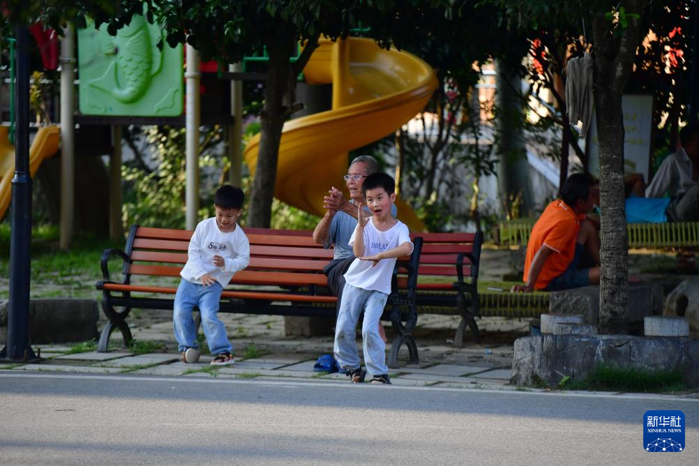 2024年5月23日,在覺山村小廣場,兩名孩子在玩耍。