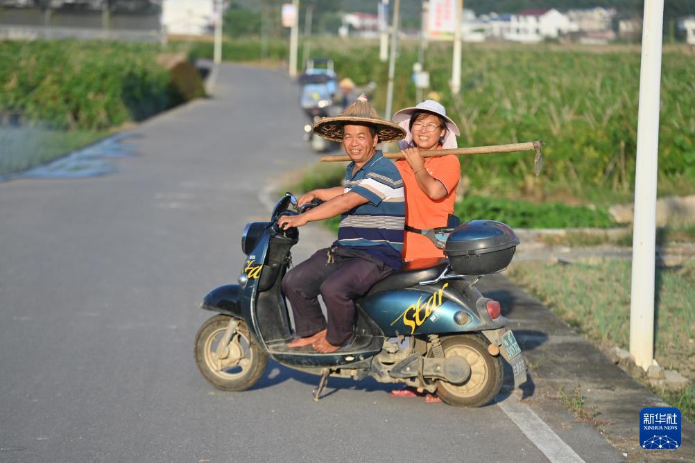 2024年8月6日,覺山村村民韋正玉(左)和愛人張勤在田邊合影。