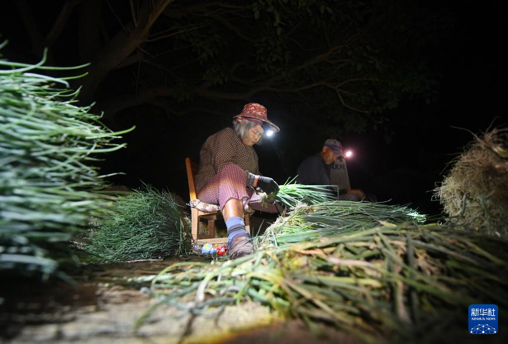 2024年10月27日清晨,覺山村村民在挑選香蔥。