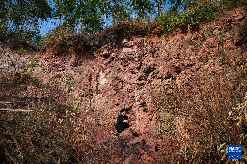 1月2日,郭卉在陶土原料地查看西泥。該原料地位于欽江西岸,所產陶土顏色紫紅,質地細膩,被稱為西泥。西泥與產自欽江東岸的東泥按一定比例混合,成為坭興陶陶土最主要的原料。