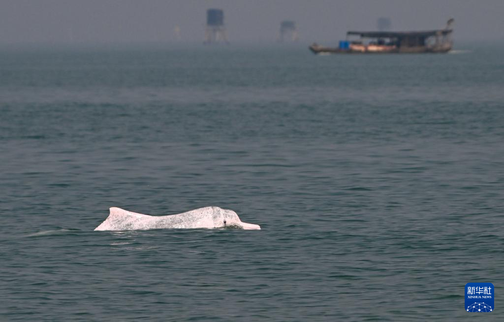 這是1月6日在三娘灣附近海域拍攝的中華白海豚。中華白海豚幼年呈暗灰色,青壯年個體灰色和粉紅色相雜,成熟期后逐漸變成白色。