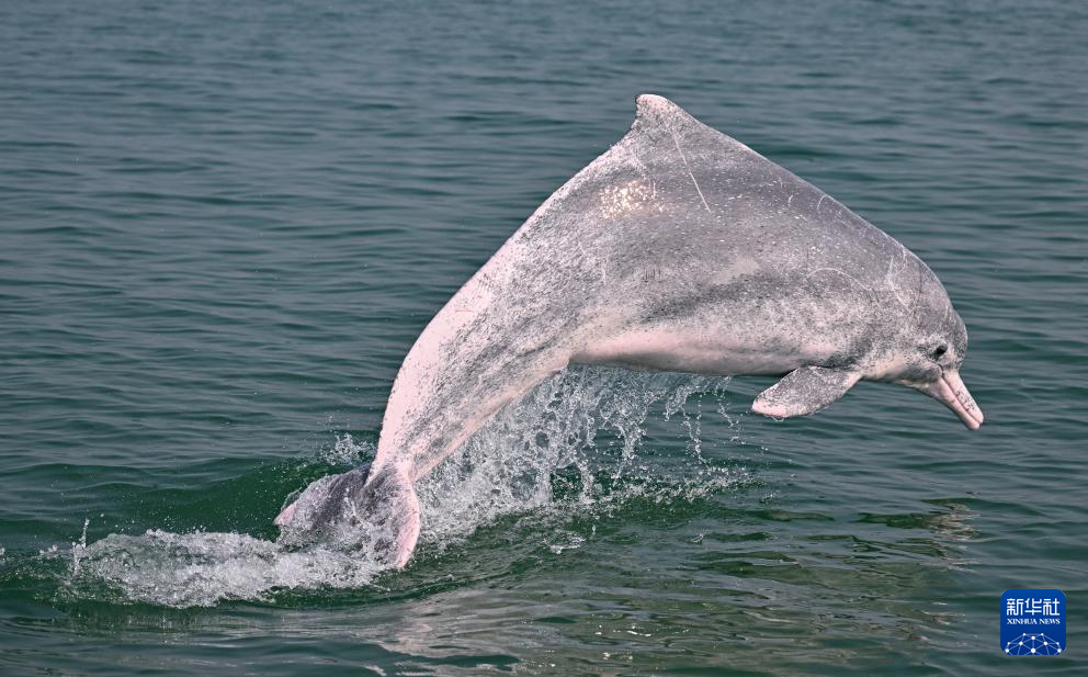 這是1月6日在三娘灣附近海域拍攝的躍出海面的中華白海豚。