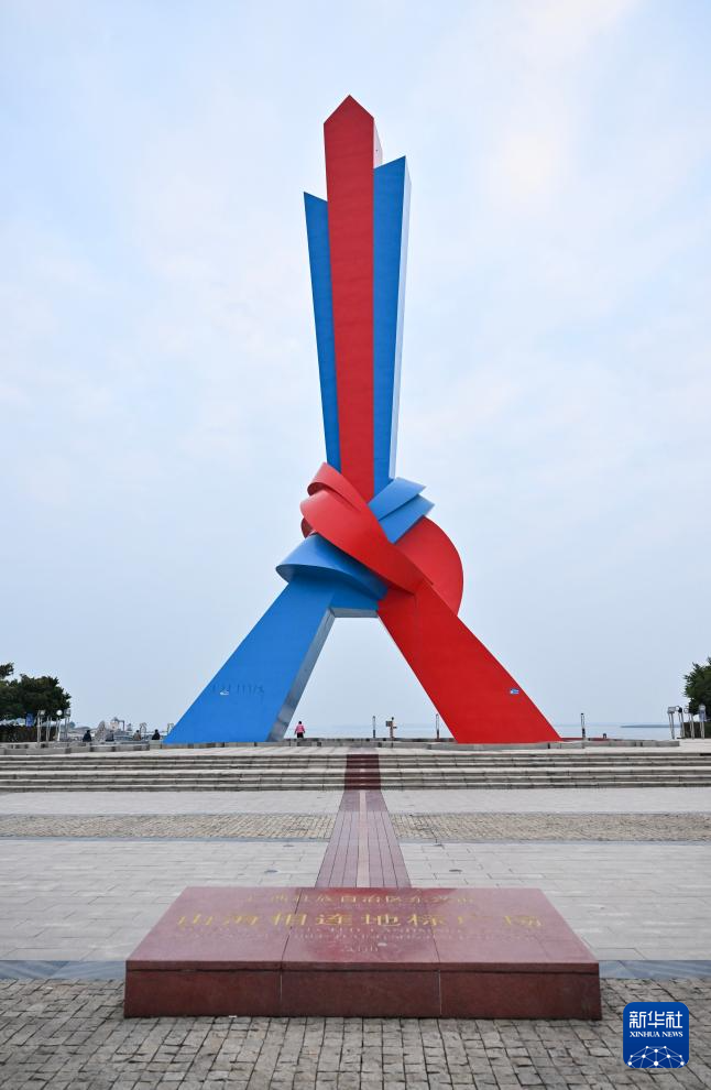 1月8日拍攝的位于廣西東興的山海相連地標廣場。