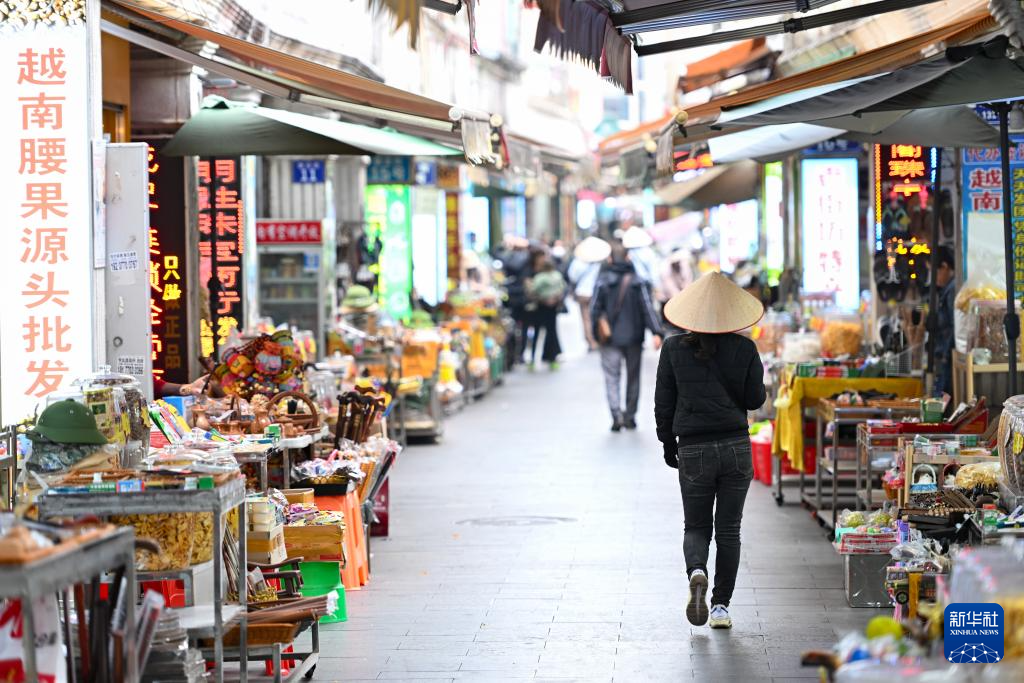 1月8日拍攝的東興街巷中售賣的各類越南特色產品。