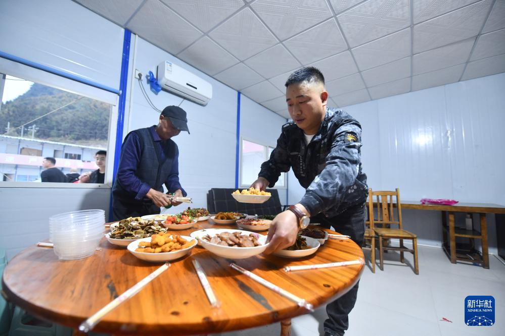 在柳州市柳江區三都鎮魚宜高速公路建設工地,中鐵二十局的工人在準備團圓飯(1月22日攝)。