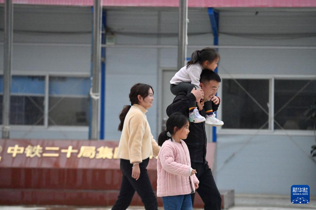 在柳州市柳江區三都鎮魚宜高速公路建設工地,中鐵二十局的工人陳公興和妻女在一起(1月22日攝)。