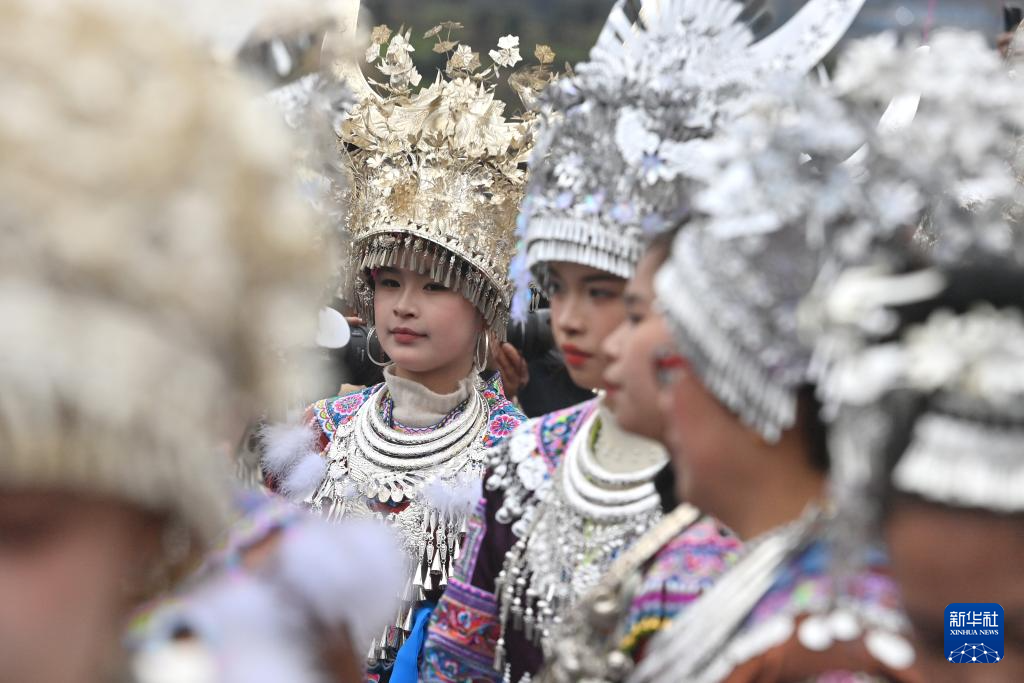 當日是農歷正月十三,廣西柳州市融水苗族自治縣安太鄉迎來一年一度的“十三坡會”。當地各族群眾歡聚一堂,開展吹蘆笙、跳踩堂舞等活動。