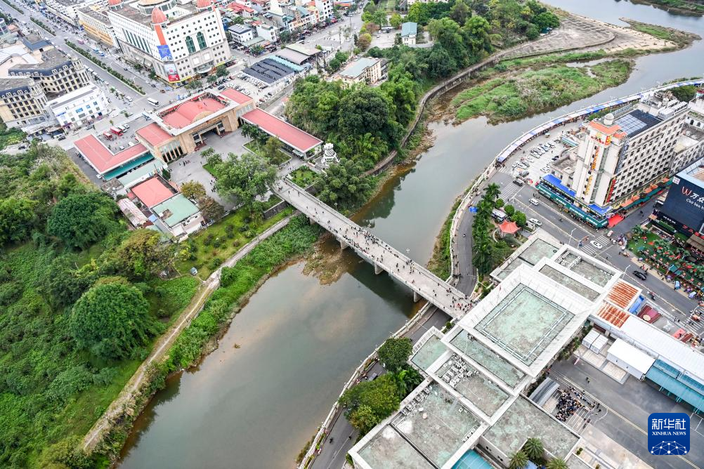 這是2023年12月20日在廣西東興口岸附近拍攝的往來中越兩國的旅客,圖中的河流即為中越兩國界河——北侖河。新華社記者 曹祎銘 攝