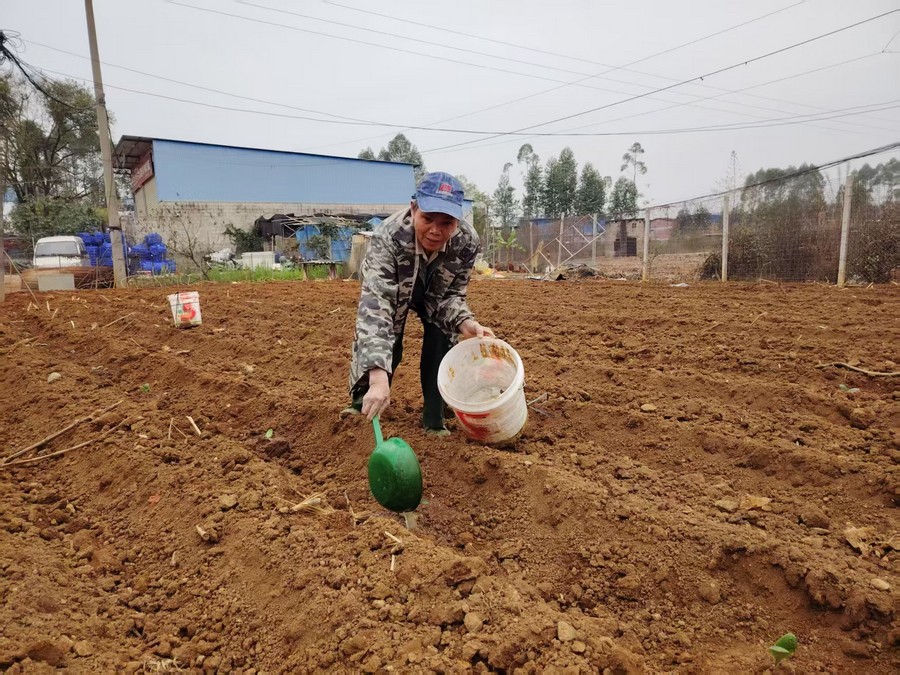 在英烈村的一處田地里,農戶給剛種植的南瓜苗澆水。春節后下過雨,給翻耕和種植帶來了有利條件,農戶們正在抓緊晴好天氣育種、播種、蓋土、施肥、澆水。截至目前,寧武鎮已經翻耕面積1000多畝,主要種植玉米、南瓜等農作物,預計一個月時間基本完成春耕春種。