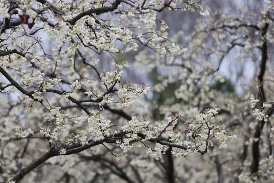 近日,在廣西賀州市八步區蓮塘鎮美儀村,連片的山楂花競相綻放,潔白如雪的花瓣鋪滿枝頭,美不勝收。市民游客紛至沓來,漫步在花海間,感受早春氣息。圖為游客在賞花拍照。黎豪圖/攝