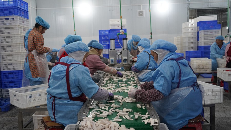 在桂林恭城三源農業開發有限公司,生產線已經全面啟動。100多名工人正在熟練地給芋頭清洗、削皮、切片、包裝,忙不停歇,搶抓進度趕出產能。據悉,桂林恭城三源農業是一家從事農、林、牧、漁專業多元化發展的企業,2024年三源僅在芋頭初加工這項業務上產量都已達到7000多萬噸,產品在市場備受青睞,遠銷全國各地。