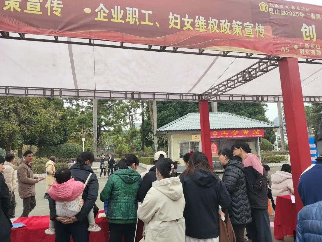 2月6日上午,欽州市靈山縣婦聯積極組織巾幗志愿者、大學生志愿者到靈山縣2025年“春風行動”暨服務企業用工現場開展服務,為女性求職者提供就業創業咨詢并開展婦女維權、未成年人保護等宣傳。