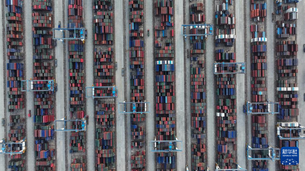 3月4日拍攝的欽州港集裝箱自動化碼頭的集裝箱儲放地(無人機照片)。