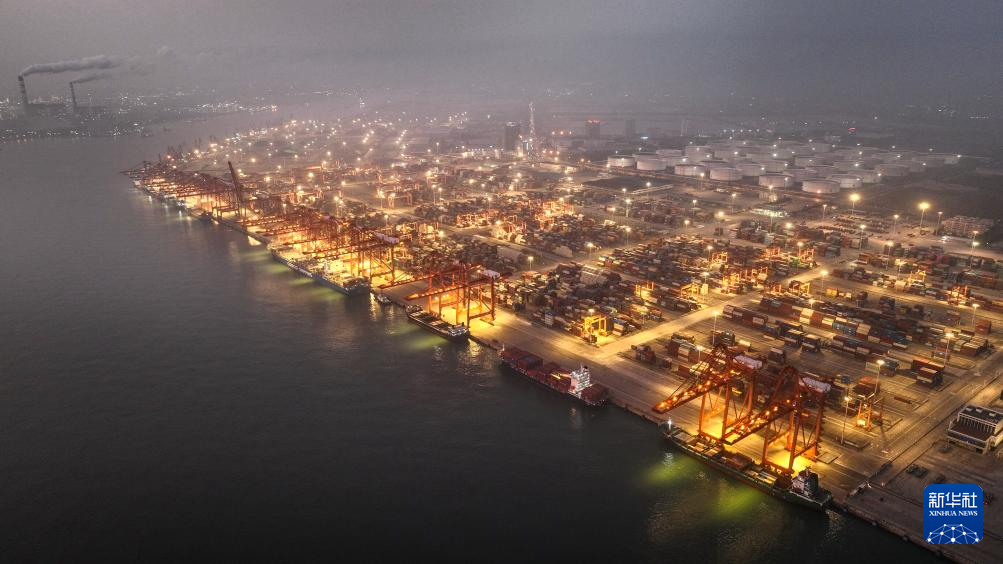3月4日拍攝的欽州港碼頭夜景(無人機照片)。