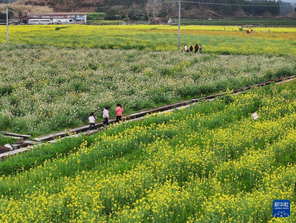 3月8日,游客在廣西恭城瑤族自治縣栗木鎮觀賞油菜花。