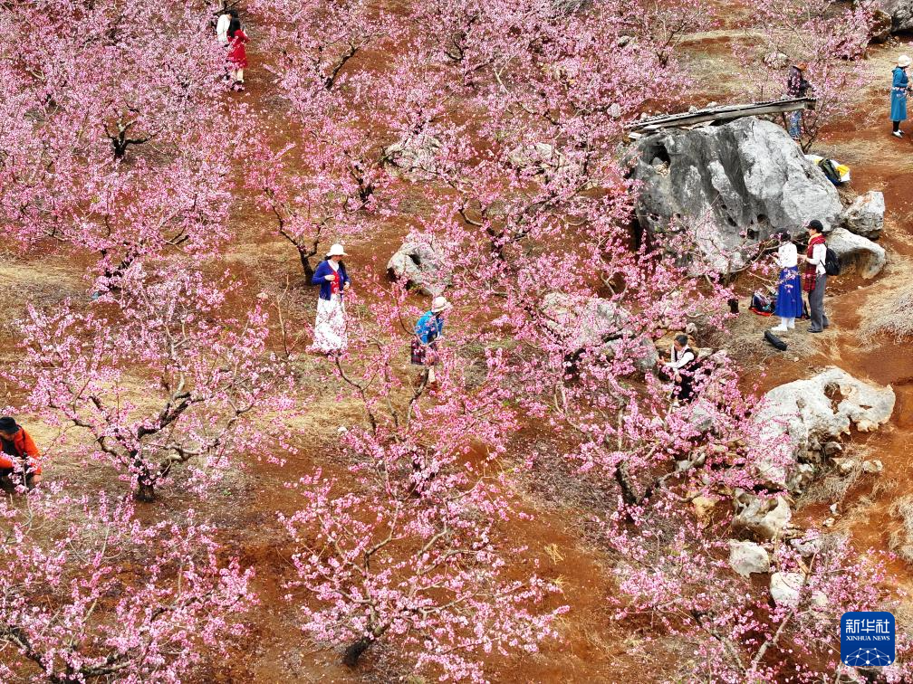 3月8日,游客在廣西恭城瑤族自治縣恭城鎮觀賞桃花。