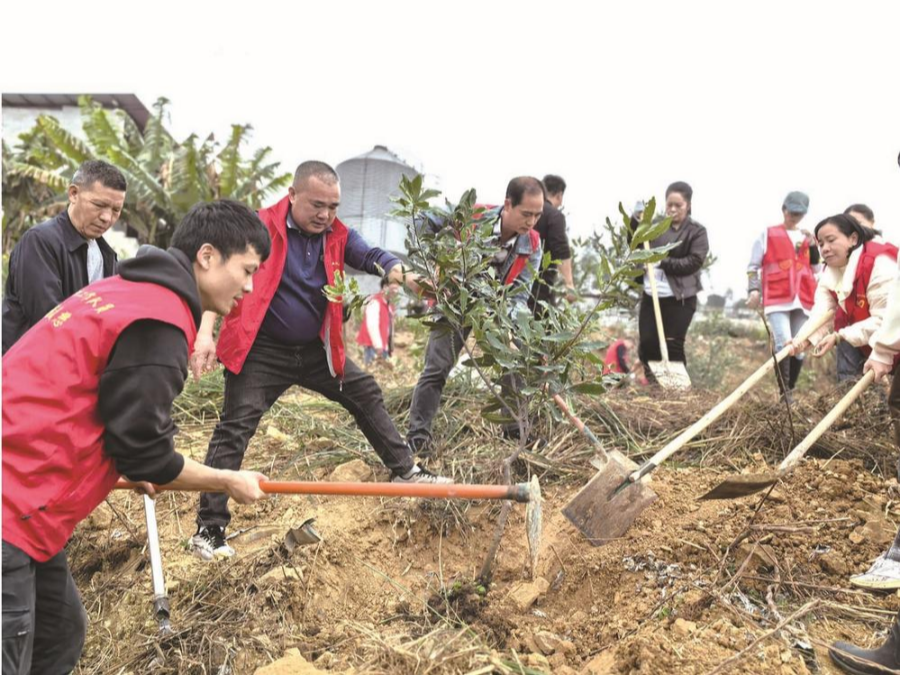 3月12日,合山市自然資源局組織開展“黨建引領,共植青綠”主題黨日活動,通過栽植樹苗,為鄉村生態振興注入新活力。何柳靜 攝