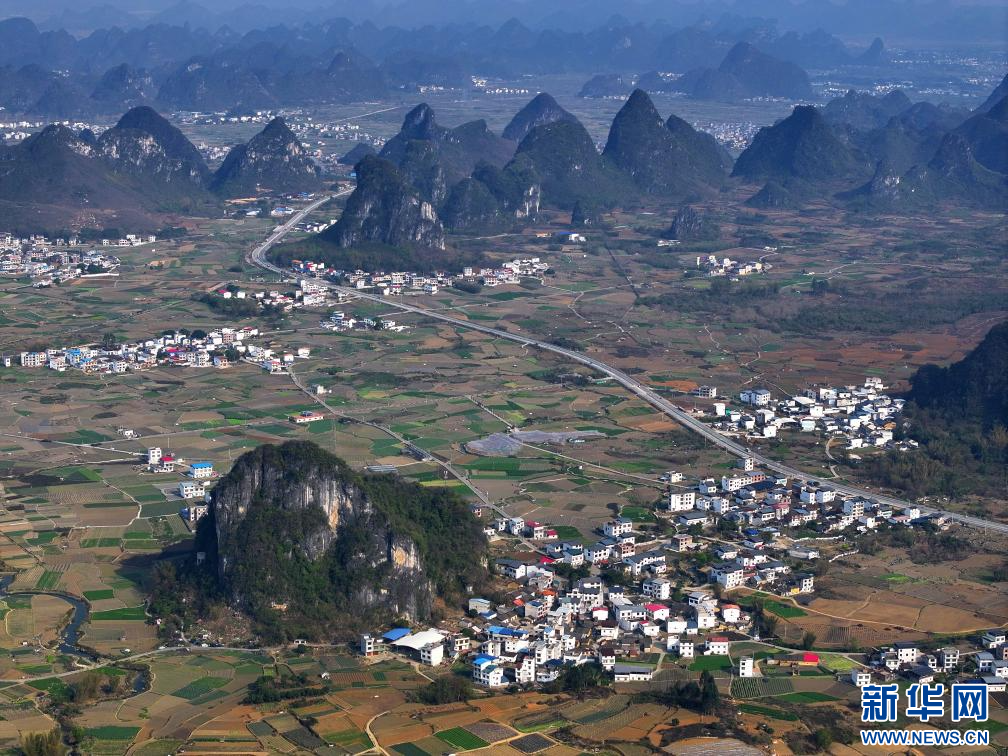這是廣西柳州市柳江區三都鎮的鄉村田園春景(無人機照片,3月20日攝)。
