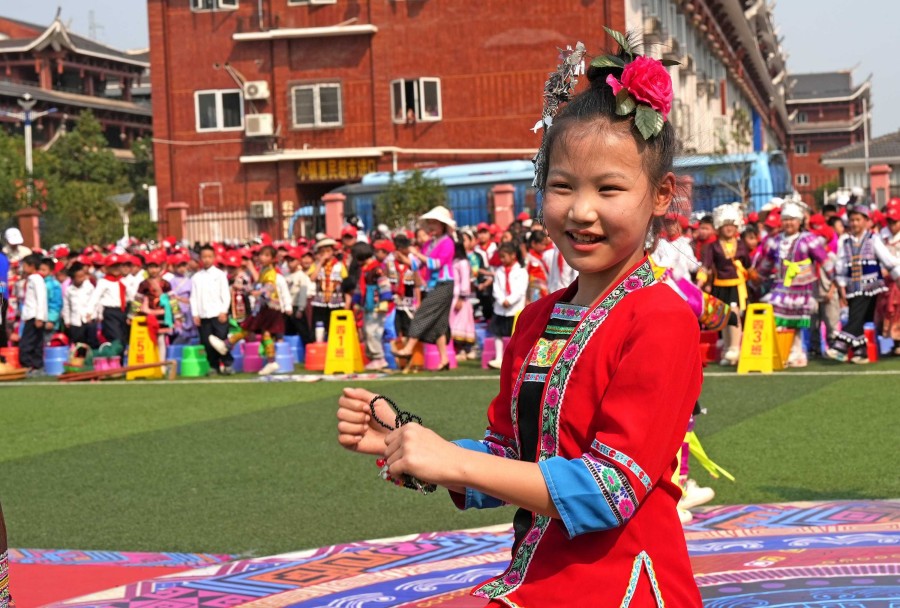 3月26日,廣西柳州市融水苗族自治縣苗家小學舉行三月三活動暨民族趣味運動會開幕式,各族少兒通過蘆笙踩堂、情景山歌對唱和民族趣味運動項目展示等豐富多彩的民族文體活動,喜迎三月三傳統節日。(龍濤)