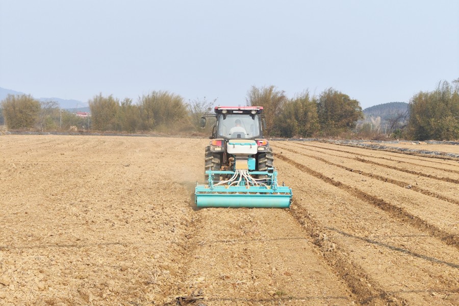 在稻藕輪作基地,水稻田里傳統水稻育秧和旱地水稻播種正同步進行。一邊村民們穿梭在田間壟上,嫻熟地整理秧床、播撒稻種、覆蓋薄膜、覆泥壓邊。另一邊,農機手正在使用新型水稻旱直播機直接在未灌溉的旱田中精準播種,一次性完成開溝、播種、覆土、鎮壓等作業,順利將一粒粒稻種精準地播撒進土壤。